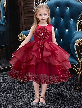 Abito da damigella d'onore bambina Ragazze Abito formale Abiti da sposa Feste Matrimonio Formale Formale Abito per la Prima Comunione Patchwork Rete Tinta unica Senza Maniche Girocollo Rosso bordeaux
