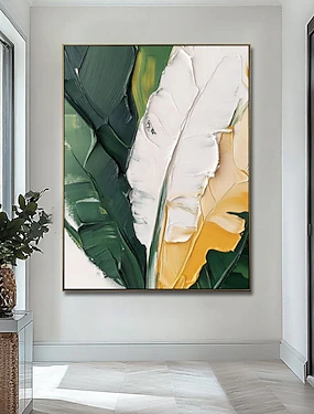 dipinto a olio fatto a mano su tela decorazione da parete astratta piante verdi foglia di banano per la casa soggiorno arredamento dipinto appeso con cornice tesa/dipinto arrotolato senza cornice