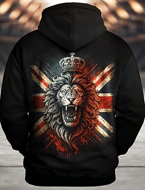 Per uomo Bandiera Leone UK Felpa con Cappuccio Felpa Sport Moda Manica Lunga Girocollo All'aperto Ufficio Abbigliamento casual alla moda Nero Blu Coulisse 3D Autunno Inverno progettista S M L XL XXL
