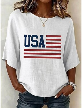Giorno dell'Indipendenza Americana Per donna Top estivi Stampato Grafico Bandiera Vintage Casual Senza Maniche Manica 3/4 Girocollo Top Regolari Casuale Quotidiano Blu Nero Bianco Giallo Rosso Estate