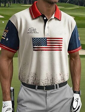 Giorno dell'Indipendenza Americana Per uomo Bandiera Americana Golf Polo Sportivi Manica Corta Magliette polo Camicie con Colletto Casual Athleisure Bottoni Primavera & Estate Rosso Verde