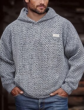 Per uomo Felpa con cappuccio Nero Bianco Verde militare Cachi Grigio Con Cappuccio Semplice Jacquard A coste Testurizzato Trama a maglia Sport & Outdoor Quotidiano Ferie Poliestere Streetwear