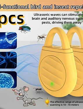 Confezione da 2 repellenti elettronici a ultrasuoni per uccelli e insetti, repellenti portatili per topi, zanzare e formiche, raggio d'azione effettivo di 10-70 metri, controllo dei parassiti sicuro e