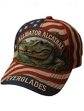 Per uomo Cappellino da Baseball Cappello da Sole Cappello da Camionista Rosso Blu Poliestere Stampato Moda Casual Streetwear Quotidiano Coccodrillo Bandiera Americana Regolabile Protezione solare