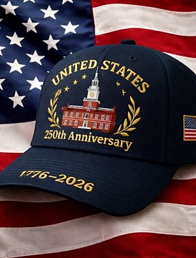 Cappello unisex 250° anniversario/indipendenza, berretto da baseball, portatile, traspirante, quotidiano, per esterni, strada, ricamo, bandiera