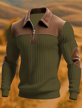 Per uomo Maglia Felpa con zip Verde Mezza zip Blocco di colori Patchwork Sport & Outdoor Quotidiano Ferie Poliestere Streetwear Essenziale Casual Primavera & Autunno Abbigliamento Felpe con cappuccio