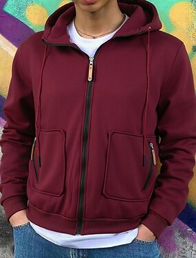 Per uomo Felpa con cappuccio Felpa con cappuccio a zip intera Nero Vino Con Cappuccio Semplice Coulisse Tasca Sport & Outdoor Quotidiano Ferie Poliestere Streetwear Essenziale Casual Primavera Autunno