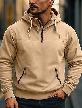 Per uomo Felpa con cappuccio Felpa con cappuccio e zip corta Felpa con cappuccio tattica Nero Blu marino Cammello Verde Con Cappuccio Semplice Patchwork Sport & Outdoor Casuale Quotidiano Streetwear