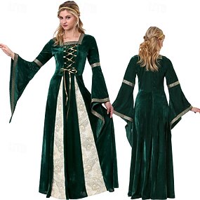 Medievale Rinascimento Abito celtico Costume di fantasia Strega Elfico Costume Per donna Celtico Fantasia Reale Halloween Carnevale Mascherata LARP Adulti Vestito Copricapo