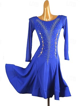 Balli latino-americani Abito Con diamantini Nappa Per donna Prestazioni Addestramento Manica lunga Alto Elastene Tulle