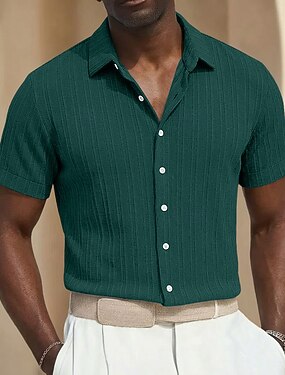 Per uomo Camicia Camicia casual Camicia da Spiaggia Camicia con Bottoni Camicia Jacquard Nero Bianco Vino Blu marino Kaki Manica Corta Tinta unica Semplice Bavero Casuale Abbigliamento casual alla