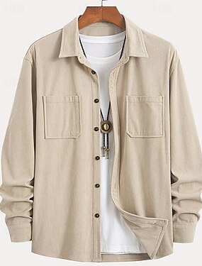 Per uomo Camicia di Velluto a Coste Giacca camicia Giacca invernale Semplice Vacanza Abbigliamento quotidiano Verde militare Beige Manica Lunga Bavero Primavera Autunno Abbigliamento Tasca