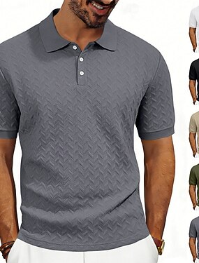 Per uomo Polo Testurizzato Casuale Streetwear Bavero Manica Corta Essenziale Moderno Semplice Leggero Bottoni Estate Primavera Vestibilità regolare Nero Bianco Cachi Grigio scuro Verde militare Polo