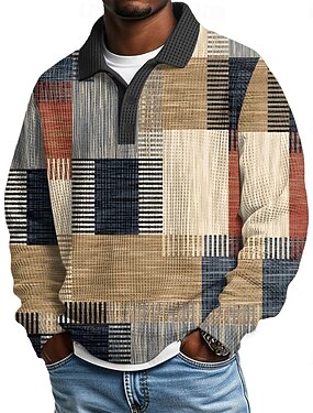 Per uomo Blocco di colori Geometrico Magliette Polo a Nido d'Ape Testurizzato Manica Lunga Magliette polo Bavero Abbigliamento Sportivo Casual Scuola Athleisure Abbigliamento quotidiano Stampa 3D