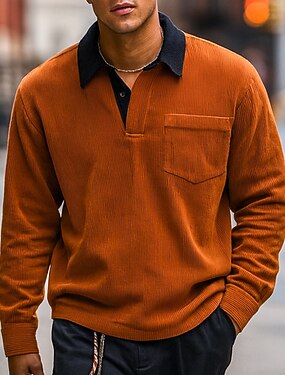 Per uomo Camicia di Velluto a Coste Polo Casuale Sportivo Bavero Manica Lunga Moda Essenziale Blocco di colori Patchwork Bottoni Autunno Primavera & Autunno Vestibilità regolare Nero Bianco Verde