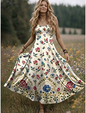 Per donna Abito maxi Abito a trapezio Abito Sottoveste Vacanza Casual Boho Feste Uscire Vestibilità regolare Floreale Grafico Senza Maniche Scollo a V Blu Viola Marrone Beige Estate Primavera