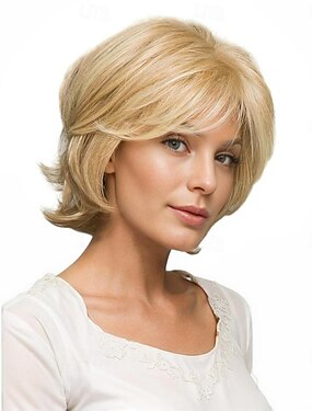 Parrucca corta bionda per donna, taglio corto con frangia, parrucca sintetica naturale da nonna per l'uso quotidiano alle feste