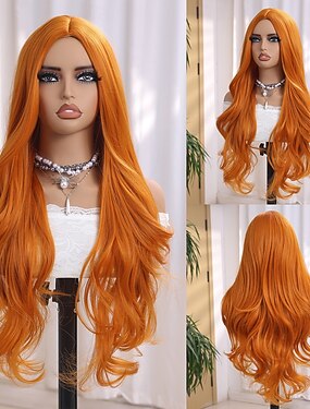 Parrucche Viola per Donne Parrucca Gotica Parrucca Sintetica Onde a Corpo Parrucca con Parte Centrale Lunga Nera Rossa Viola Scura Capelli Sintetici 26 Pollici Donne Viola (Non-Lace) Parrucche di