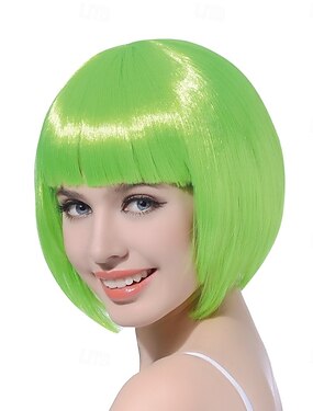 Parrucca di Carnevale 2026 Verde Liscio Ciocca Corto Parrucca sintetica da festival Martedì grasso Parata Capelli per costumi da cosplay per Da donna