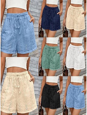 Per donna Chinos Pantaloncini anti sfregamento Vacanza Streetwear Casual Corto Vita media Tinta unica Pizzo Fascia Elastica Comodo Micro-elastico Quotidiano Casa All'aperto Nero Bianco Estate