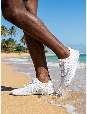 Scarpe da acqua da uomo bianche ad asciugatura rapida, leggere, minimaliste, antiscivolo, ideali per attività acquatiche, nuoto, viaggi al mare, passeggiate sulla spiaggia, trekking fluviale e sport all'aria aperta.