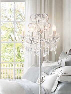 Lampada da terra in cristallo trandizionale a 5 luci da fattoria, apparecchio di illuminazione a candelabro artigianale bianco alto 62 '' per soggiorno, sala da pranzo, ingresso, camera da letto