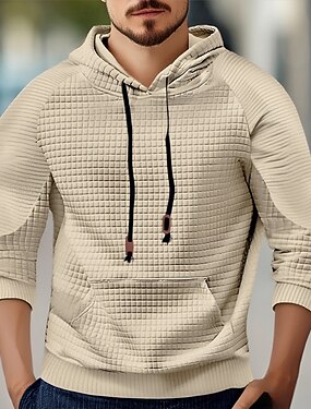 Per uomo Felpa con cappuccio Nero Bianco Blu marino Cachi Grigio chiaro Con Cappuccio Semplice Jacquard Coulisse Tasca Sport & Outdoor Quotidiano Ferie Poliestere Streetwear Essenziale Casual