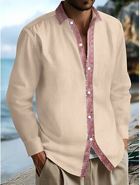 Per uomo Camicia Camicia di lino Camicia Estiva Abbigliamento da spiaggia Camicia con Bottoni Camicia etnica Tinta unica Vacanza Ferie Nero Bianco Blu marino Blu Manica Lunga Bavero Estate Primavera