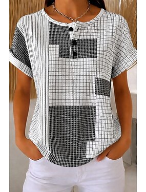 Per donna Maglietta Waffle Top a maglia con texture Top estivi Stampato Grafico Geometrico Elegante Classico Manica Corta Girocollo Top lunghi Casuale Quotidiano Bianco e nero Nero / blu Estate