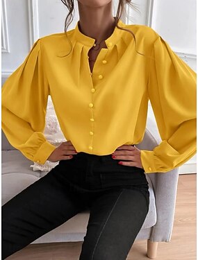 Per donna Camicia Camicia button-down Camicia casual Blusa Bottoni Semplice Elegante Essenziale Classico Manica Lunga Collo alla coreana Top Regolari Quotidiano Ferie Uscire Blu Nero Bianco Giallo