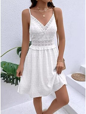 Per donna Mini Abito Abito in Pizzo Abito Bianco Elegante Moda Moderno All'aperto Vacanza Uscire Vestibilità regolare Semplice Senza Maniche Scollo a V Bianco Estate Primavera