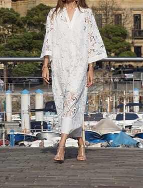 Per donna Abito Midi Abito in Pizzo Vestito Estivo Abito Bianco Moderno Spiaggia Vacanza Uscire Vestibilità comoda Floreale Semplice Manica Lunga Scollo a V Bianco Estate Primavera Autunno