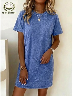 Per donna Abito al ginocchio Abiti di jeans Vestito Casual Abito a trapezio Moda Essenziale Quotidiano All'aperto Vacanza Vestibilità regolare Semplice Manica Corta Collo alla coreana Blu Estate