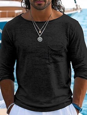 Per uomo Maglietta in lino Manica Lunga A barca Estate Primavera Tutte le stagioni Tinta unica Vintage Stile Boho Casual Puro Casuale Vacanza Streetwear Blu Nero Bianco Maglietta Top per Uomo