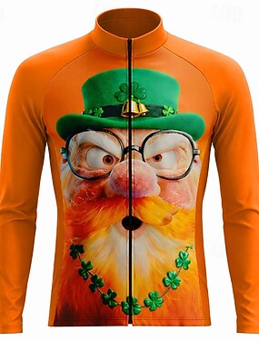 San Patrizio Per uomo Maglia da Ciclismo Maglia da downhill Trifoglio Manica Lunga Bicicletta Maglietta Maglia Top con 3 tasche posteriori Mountain Bike MTB Ciclismo su strada Protezione Solare Con