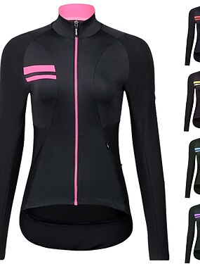 Per donna Maglia da Ciclismo Tinta unica Manica Lunga Bicicletta Maglia Top con 3 tasche posteriori Mountain Bike MTB Ciclismo su strada Asciugatura Rapida Strisce Riflettenti Tasca Posteriore