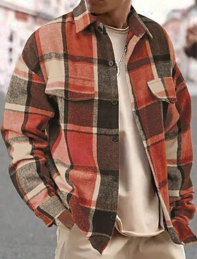 Per uomo Giacca Camicia Giacca Casual Vacanza Quotidiano Calore Termico Tasca Primavera Autunno Plaid Moda Classico Bavero Regolare Grigio scuro Giallo Arancione Grigio chiaro Rosé Giacca