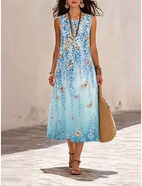 Per donna Abito Midi Abito a Tubino Vestito Estivo Abito a trapezio Vacanza Casual Boho Spiaggia Feste Vestibilità comoda Floreale Grafico Senza Maniche Girocollo Blu Bianco Verde Estate Primavera