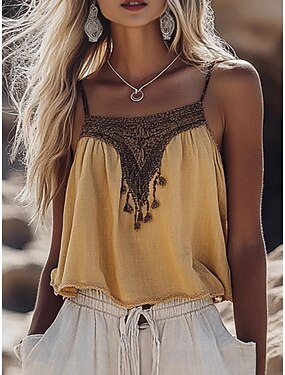 Per donna Blusa Canotta a canotta Maglietta senza maniche Blocco di colori Bohemien Elegante Classico Senza Maniche Spallina Top corti Quotidiano Ferie Uscire Giallo Estate Primavera