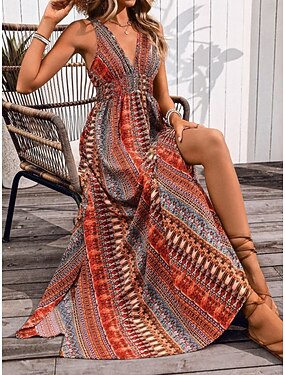 Per donna Abito maxi Vestito Estivo Abito a trapezio Abito Sottoveste Vacanza Casual Boho Spiaggia Vestibilità regolare Grafico Foglia Animale Senza Maniche Scollo a V Arancione Estate Primavera