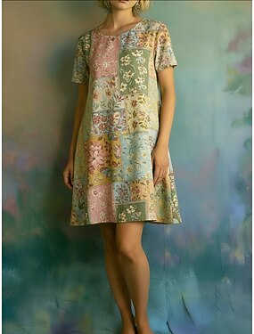 Per donna Mini abito Abito Boho Vestito Casual Vestito T-Shirt Vintage Quotidiano All'aperto Vacanza Vestibilità regolare Floreale Manica Corta Girocollo Verde Estate Primavera