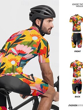 Per uomo Maglia da ciclismo con pantaloncini Manica Corta Mountain Bike MTB Ciclismo su strada Estate Primavera Autunno Nero Giallo Rosa Motivo Floreale Bicicletta Cerniera Frontale Traspirante