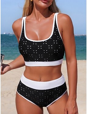 Per donna Top bikini con scollo all'americana Costume da bagno 2 pezzi Patchwork Asciugatura Rapida Alta elasticità Senza Maniche Costume da Bagno Costume da bagno Surf Bikini Nuoto Estate