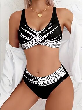 Bikini da donna 2 pezzi provocante slim senza schienale abbigliamento da spiaggia per le vacanze grafica geometrica scollatura a V costumi da bagno senza maniche
