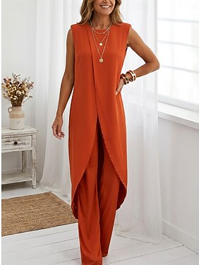 Per donna Set di Pantaloni Senza Maniche Girocollo Semplice Arricciato Patchwork Elegante Moda Streetwear Casuale Quotidiano All'aperto Nero Verde chiaro Rosso Estate Vestibilità comoda