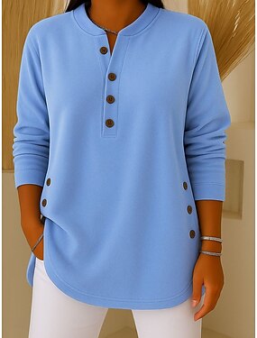 Per donna Maglietta Bottoni Semplice Elegante Moda Classico Manica Lunga Scollo a V Top Regolari Quotidiano Uscire Weekend Nero Bianco Rosa Blu marino Grigio Primavera Autunno
