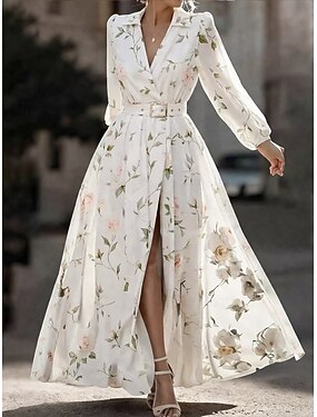 Per donna Abito maxi Vestito in Chiffon Vestito a ruota Abito Floreale Abito Stampato Elegante Moda Moderno All'aperto Vacanza Uscire Vestibilità regolare Floreale Manica Lunga Scollo a V Bianco