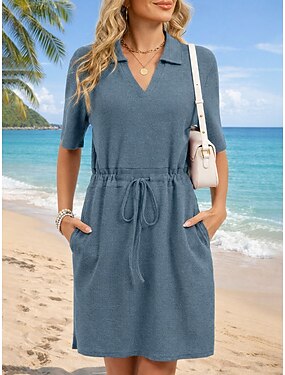 Per donna Abito al ginocchio Abito Estivo Casual Vestibilità regolare Semplice Manica Corta Scollo a V Blu Nero Rosa Viola Estate