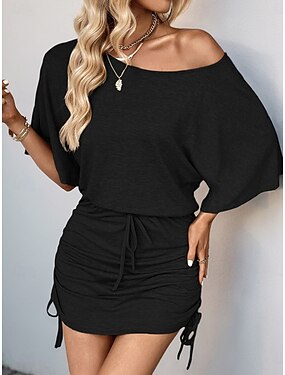 Per donna Mini Abito Abito a trapezio Abito Estivo Casual Quotidiano Taglia piccola Semplice Manica Lunga Scollo a Barca Nero Estate