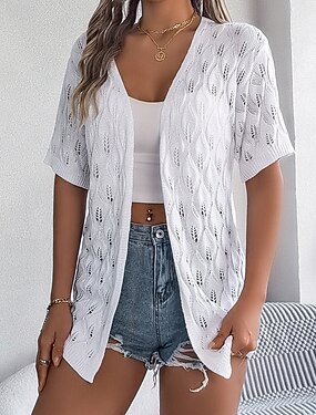Per donna Tunica Top estivi Blusa Top traforato Traforato Semplice Elegante Classico Moderno Manica Corta Top lunghi Quotidiano Ferie Uscire Bianco Rosa Cachi Estate Primavera
